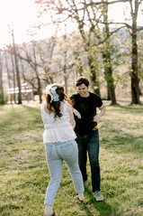 As the camera began capturing candid moments, the focus shifted to the genuine connection between the couple. As we roamed the grounds, I suggested natural activities, such as walking hand-in-hand or sharing laughter under a blooming cherry tree. These candid shots are some of the most beautiful, as they reveal authentic emotions.