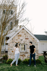 Mennefer Estate is deeply rooted in Virginia's history. With architectural features that date back over a century and sprawling grounds, it offers a romantic atmosphere. Visitors can explore charming farm animals, lush greenery, and enjoy stunning views of the mountains. During their engagement session, the early evening sunlight cast a golden glow over the estate, enhancing its beauty.